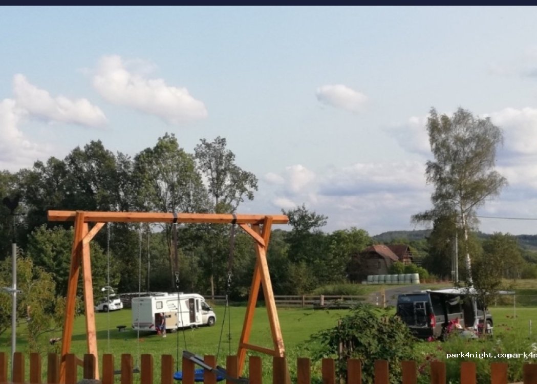 Hof Seifert campsite. Quiet campsite in the countryside next to a farm on the edge of a small village on the steep slopes of the White Elster River. The river is just a few hundred meters away on foot, making it ideal for dog owners. Beautiful views of the Elstertal Bridge (Ziegelsteinbrücke) and Eisenberg with its Mosenturm tower. From the mountain above the village, there are wonderful panoramic views of the surrounding area. All of this is within walking distance. There is a playground in the village and a 19-hole golf course in the neighboring village. A popular climbing area in the Elstertal Valley (Steinicht) is very close by. There is space for three mobile homes, but up to five are possible.
