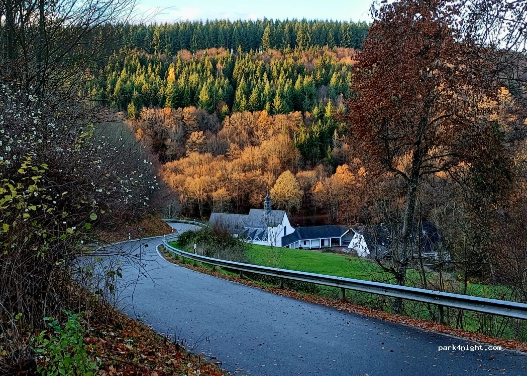 Maria Martental - upper parking lot of the pilgrimage church, signposted with normal blue P without an additional sign, generously laid out as U with one-way street regulation. Pilgrimage church accessible via stairs, there are further parking spaces at the bottom of the church (with pilgrim's restaurant Maria Martental), so that the top one will only be occupied at larger events. Very quiet. Ideal starting point for hikes to the nearby waterfall and on a narrow path with many small footbridges and bridges through the valley of the wild Endert with historical mills (Göbelsmühle refreshment stop) towards Cochem.