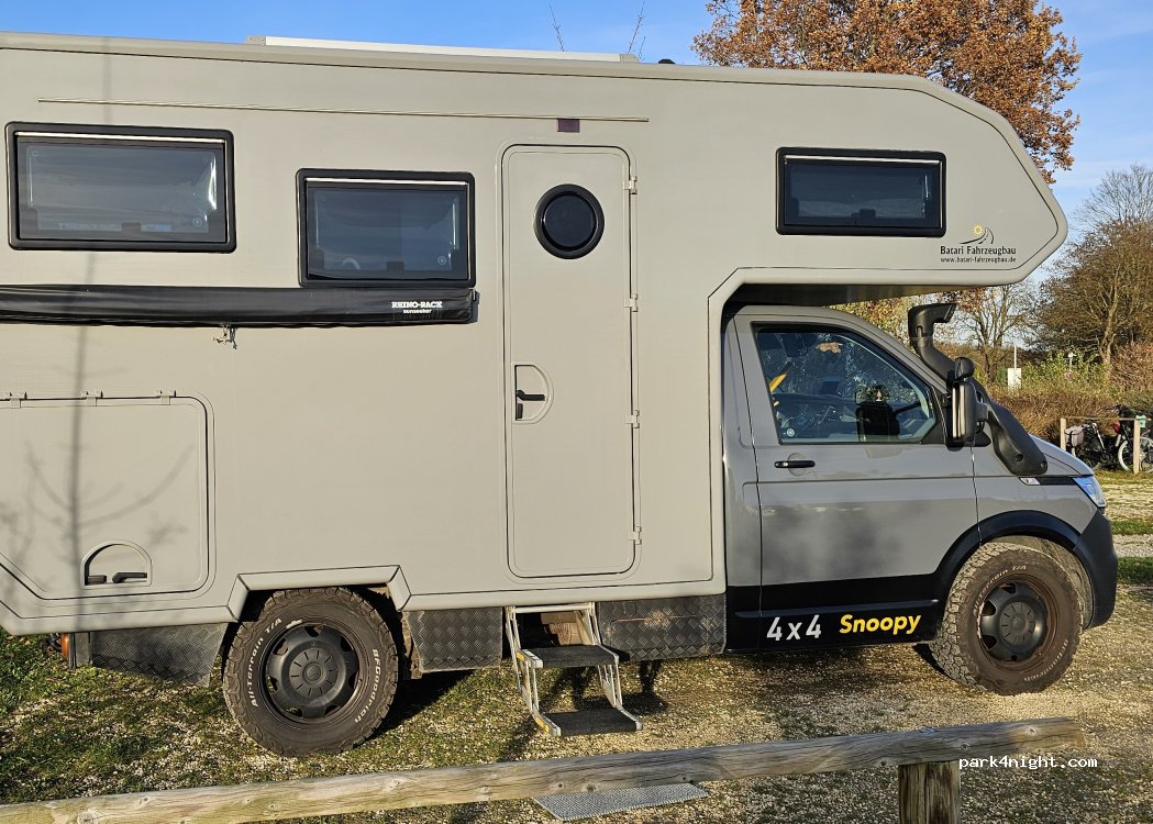 Official RV parking for the city of Neu-Ulm – directly at the Donaubad (sauna, whirlpool, etc. available with a 15% discount). About 2 km (approx. 30 minutes' walk) from Ulm's city center, which is definitely worth a visit! For RVs up to 15 meters long. Bread roll service and seasonal barbecue packages are available. Automatic payment (also accepted by credit card). Stable Wi-Fi is available. Important: This site is very popular, so it's worth arriving early!