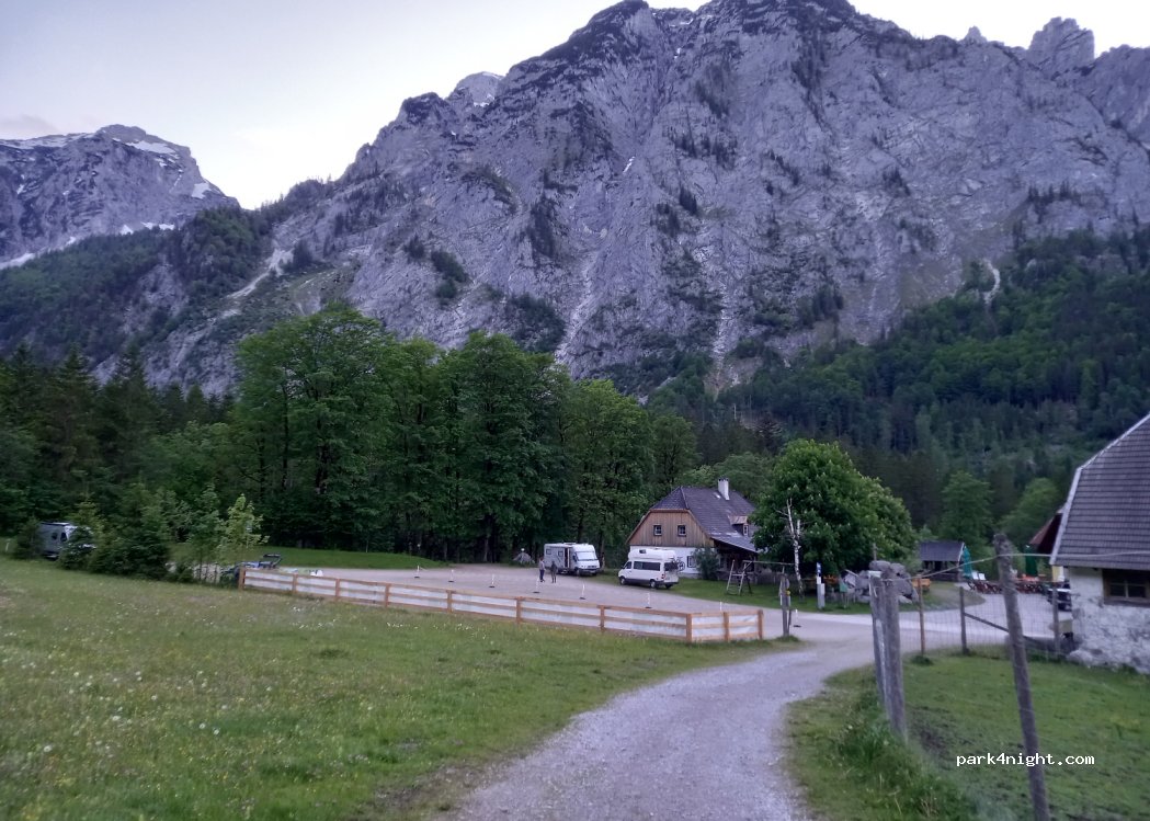 Parcheggio alla fine della strada incastonato nella bellezza. Non ci sono servizi se non la Gasthof accanto che offre leccornie anche vegetariane ;). Punto di partenza di superbi cammini. Solo la sera il proprietario della gasthaus ci ha fatto un p di storie per la presenza dei cani (noi ne abbiamo 3), nonostante fossero legati. Ha tollerato la presenza - anche se per una sola notte - ha detto!