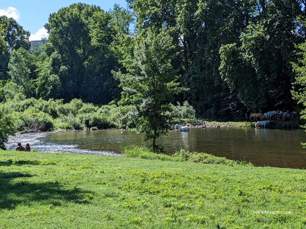 Nous sommes tombés un week end où le camping était très mal fréquenté, énormément de bruit, impossible de dormir, les gens sales autour de la rivière (couches,...). Dommage car le lieu est magnifique. Si vs voulez du calme, passez votre route...