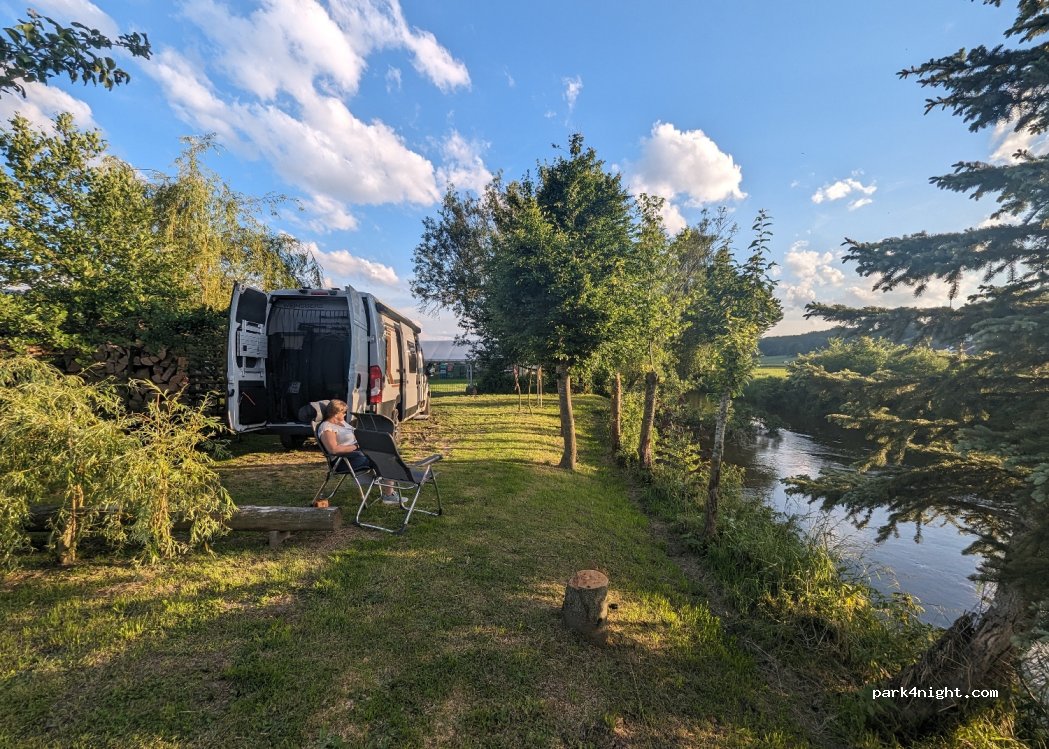Sehr schön gelegener Platz. Sehr ruhig. Stellplatz direkt am Fluss (5m). Tolle Holzsammlung zum stöbern. Sehr sympathischer Besitzer. Wie kann ich hier mehr als 5 Sterne vergeben?