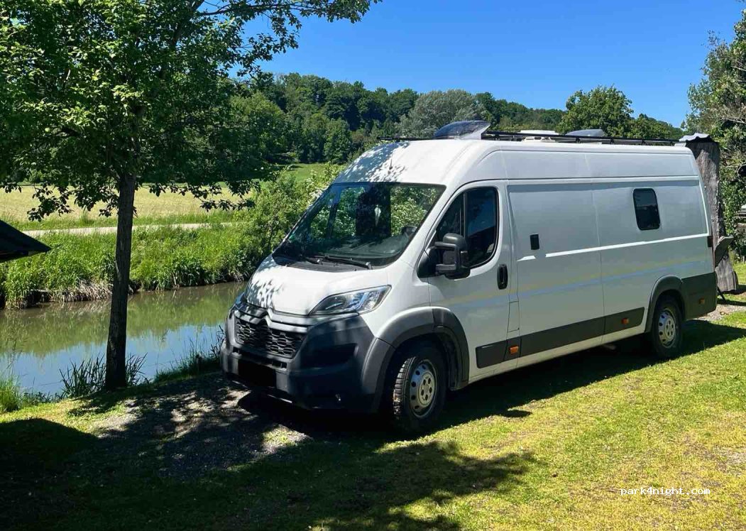 war leider geschlossen, weil Betriebsferien. Aber wirkte sehr schön, ruhig, im Grünen am kleinen Bach. Wir wären gerne dort geblieben. 20m entfernt ist eine Fabrik, wo wir hätten am Rand stehen können. Ggf. mal fragen.