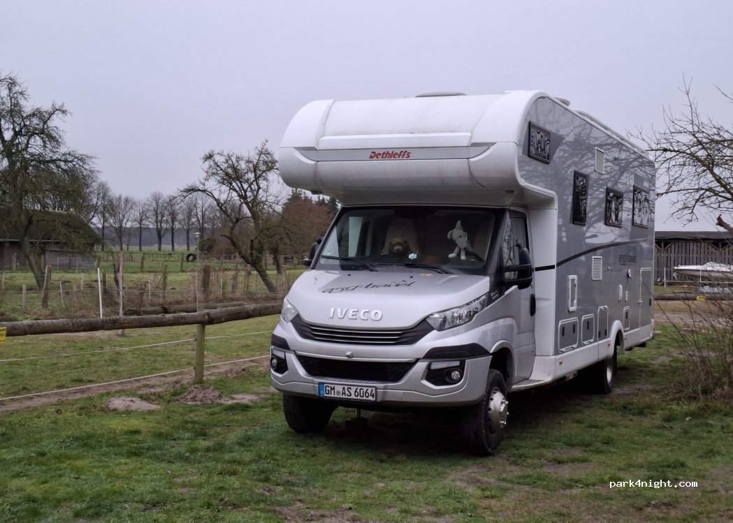 Absolut der Hammer. Man steht direkt neben Kamelen und Lamas. Sehr nette tierliebe Menschen. Auch ideal für Hundehalter. Kommen gerne wieder. Waren mit 2 Personen und 4 Hunden hier für 2 Tage. Konnten morgens bei der Fütterung aktiv teilnehmen. Unser Grand Alpha, knapp 10 Meter lang, passte noch so eben.
