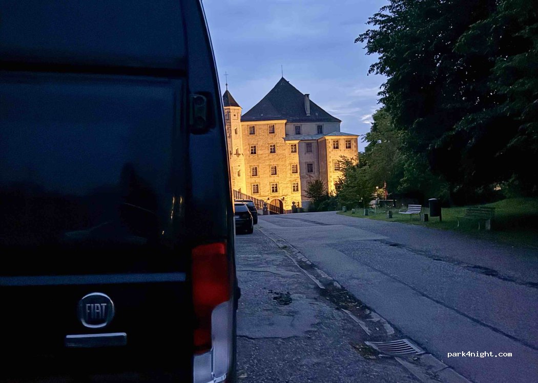 Idyllischer Stellplatz direkt vor dem Schloss und absolut ruhig. Sonntag morgens kommen allerdings die Kirchgänger und parken rundherum, stören aber nicht. Allerdings sind die Toiletten dauerhaft geschlossen.