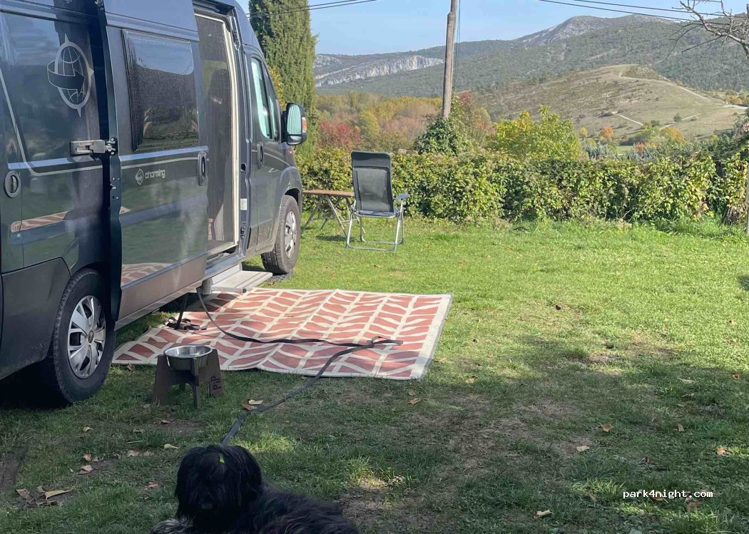 Einfacher, aber individuell nett gestalteter Platz mit toller Aussicht. Ankunft unkompliziert, auch wenn niemand da war. Abends konnten wir bei einem sehr freundlichen Mann bezahlen. Im Dorf gibt es einen Bäcker, Supermarkt und Restaurants. Hundegebell war zwischendurch zu hören, aber nicht nachts.