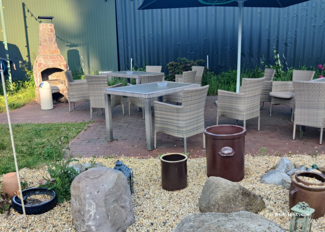 Surface in grass, very friendly staff. We got our nation’s flag planted in front of our camper’s spot. The entrance for vehicles is 100 meters behind the guesthouse. We arrived on a Sunday at 8 pm and rang the owner’s number which you can find on the sign. Unfortunately we couldn’t try the food at the guesthouse because it was closed. Very quiet and peaceful.
