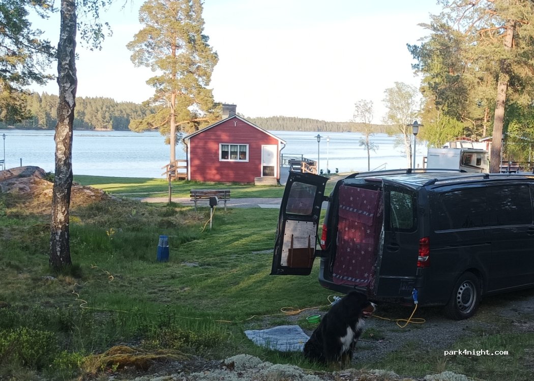 Ich war vorgestern hier, mit Hund. alles sehr sauber, gepflegt und schön angelegt. es gibt mehrere Tische und Bänke. auch eine Feuerstelle beim Bootssteg. Buchung und Bezahlung ganz unkompliziert online. Beschreibung steht direkt am Eingang zum Platz. Toiletten und Duschen wirklich sauber und Dusche ist richtig schön heiß. Man kann auch für 70 SEK nur Wasser befüllen und Entleeren etc.