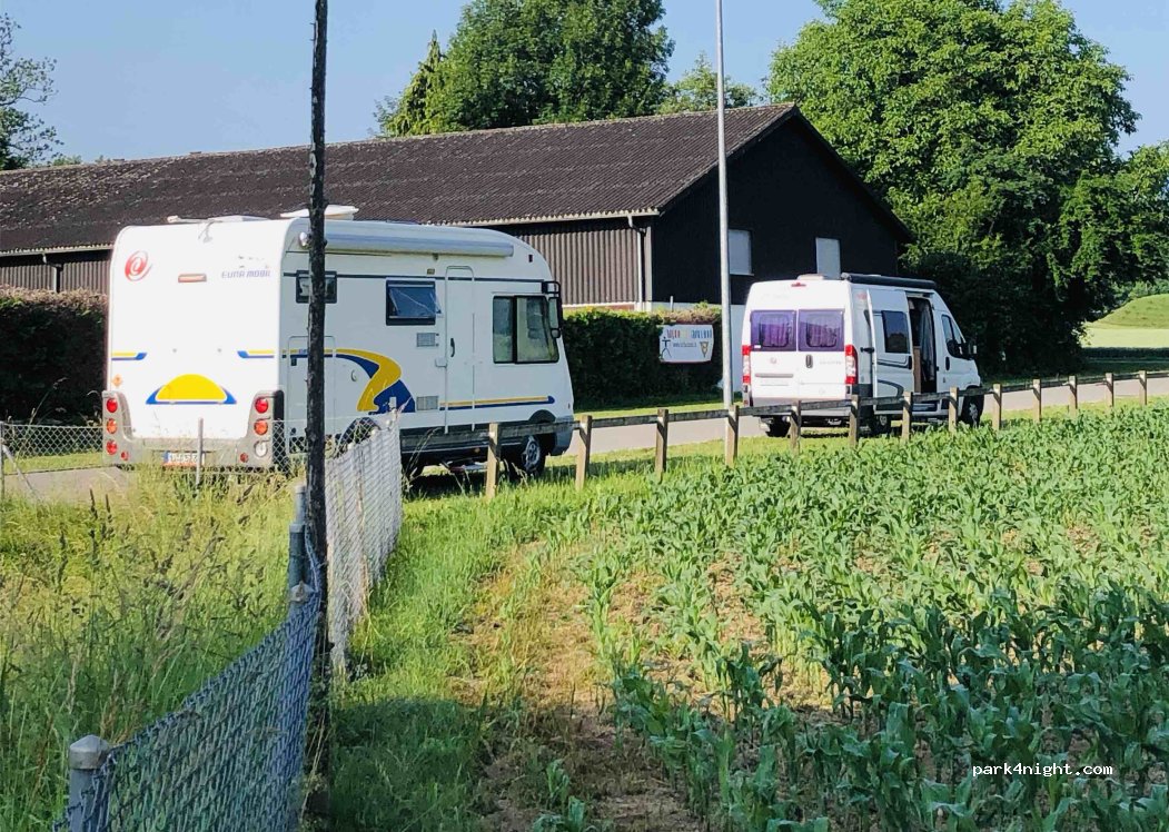 Nachmittags Parkplätze für Hundespaziergänger und heute am Donnerstag übt ab 18 Uhr der Schießverein. Der ganze Parkplatz war mit Pkws voll und es war so laut, (Knaller) dass wir abgefahren sind und dort nicht übernachten.