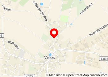 A quiet place with many oak trees, a village pond, village shop with a good range. Vrees is on the edge of the Eleonorenwald, one of the largest contiguous forest areas in Lower Saxony with many paths for cycling and hiking. Nearby are the Thülsfeld dam with climbing forest Thüle animal park (reachable by bike), the Clemenswerth hunting lodge in Sögel (reachable with the Emsland RADexpress bike bus) and the Cloppenburg museum village. The Mimameid is located in Vrees. Overnight stays in the guest house or camping hut as well as holidays with your own horse are offered. There are many dolmens in Vrees and the surrounding area.