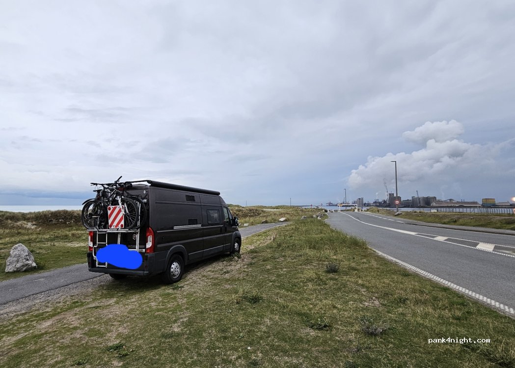 Zur einen Seite eine wunderschöne Kulisse direkt am Meer und an den Dünen. Zur anderen Seite leider viel Industrie. Es gibt einen direkten kleinen Platz für die Camper, man kann aber auch an der ganzen Düne entlang parken, Nachteil ist hier, dass man dann schräg steht. Ein weiterer Nachteil sind z.T. Geräusche von der Industrie in der Nacht. Im Allgemeinen jedoch ein toller Ort zum Übernachten!