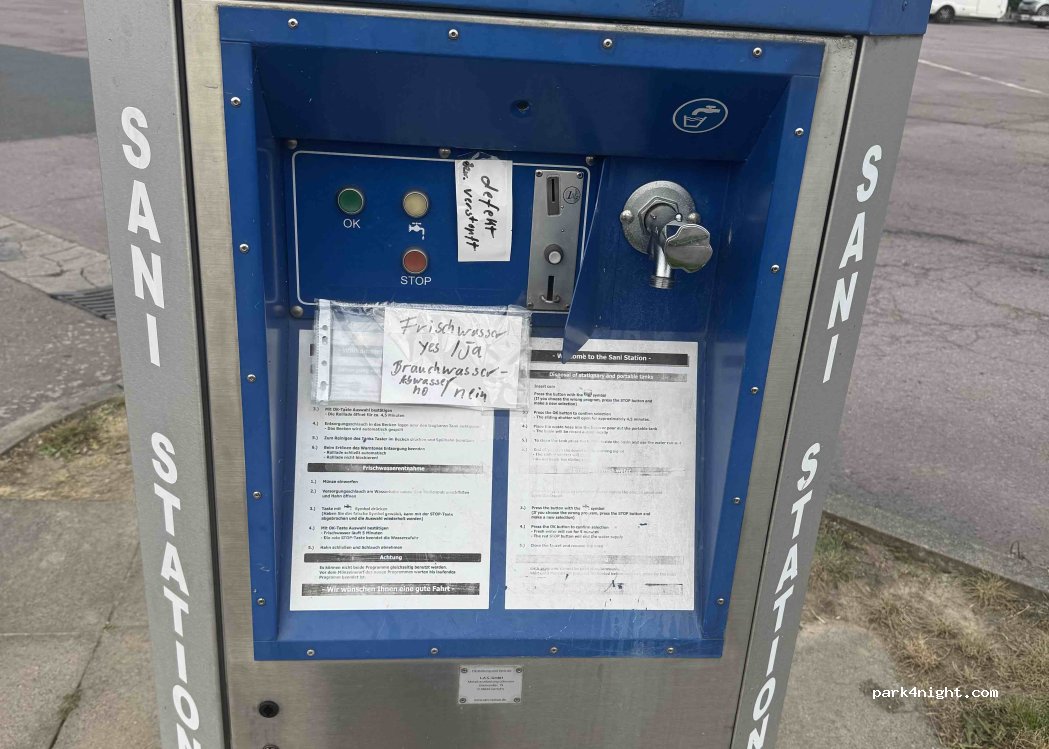 Voll funktionsfähige Sani Station und es ist auch ein Gulli daneben, welchen wir als Bodenablass für Grauwasser benutzt habe. Zudem ist sie auf dem Autohof ohne große Umwege von der Autobahn zu erreichen.
