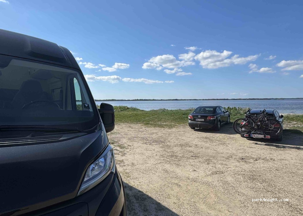 We tested this place with our 6.4-meter van; it was no problem. There was another California and two cars with bikes on them. Still, there was some room to manoeuvre and turn the van around. We are definitely coming back some other time. This spot is 100% natural.