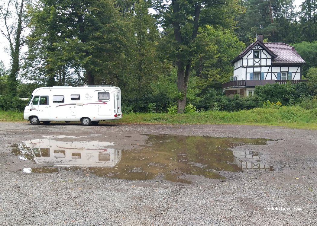 ein Parkplatz im Walde. Mit dem Fahrrad bin ich wenige Minuten ins Zentrum gefahren. Einfahrt nur bis 5,5 t erlaubt. Die wenigen Meter waren mir egal. Mir war es zu einsam, bin weitergefahren. Aber zum Stadtbesichtigen total ok.