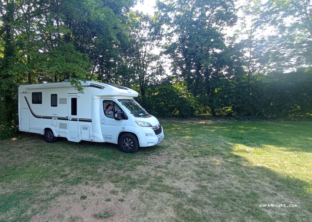 Parking by the swimming pool near the motorway. Central location to reach the city center. Noisy due to the highway.