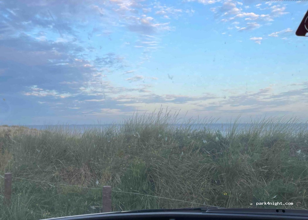 Super schöner Platz oberhalb der Dünen. Man kann oben an der Straße parken mit Sicht aufs Meer oder weiter unten am Parkplatz, wobei unten ein Schild ist, dass Wohnmobil von 22:00-6:00 verboten ist.
