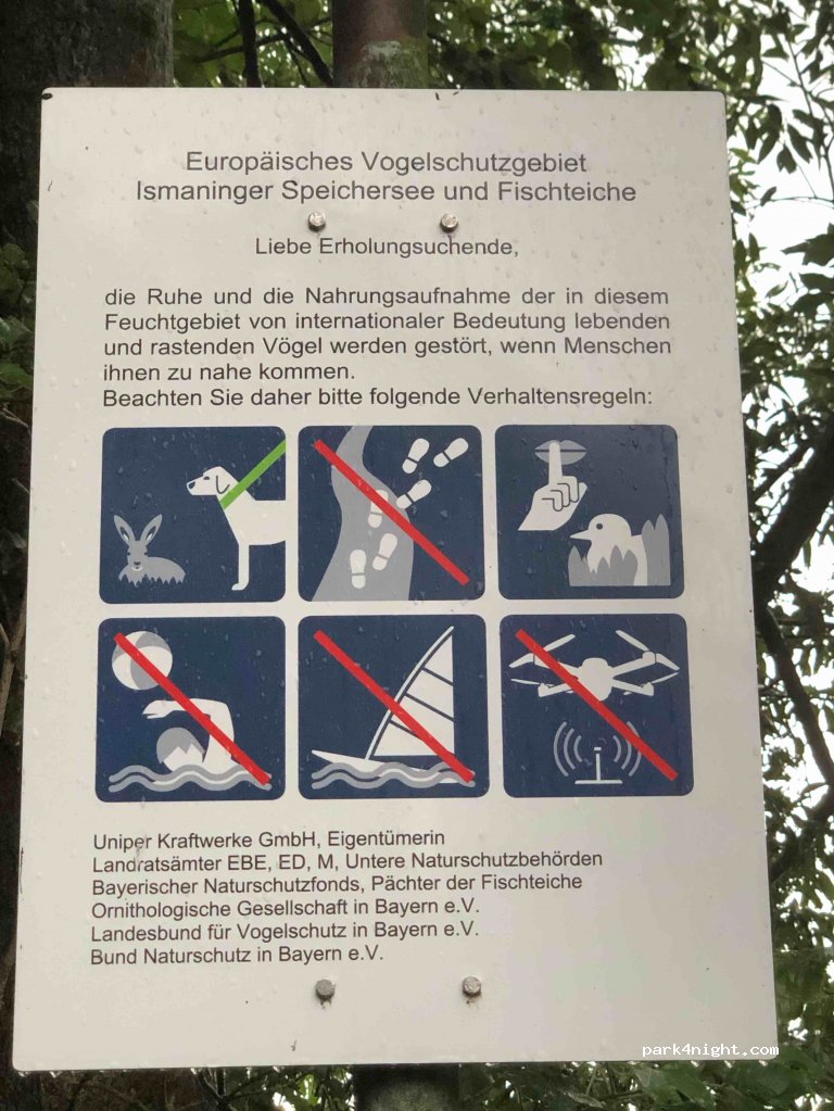 Wir haben nur kurz tagsüber angehalten. Schöner Seeblick! Wie schon geschrieben wurde, ist die Teststrecke von BMW gut zu hören.