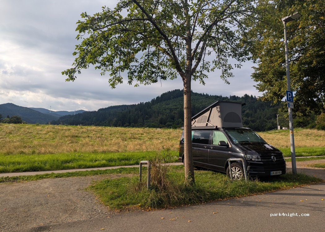 Haben eine sehr ruhige Nacht hier verbracht und sind am nächsten Tag mit den Fahrrädern 9 Min nach Freiburge rein gefahren (2,5 Km). Bei der Abfahrt haben wir dann gesehen, dass man eigentlich nur 10h hier parken darf. Das wissen wir dann fürs nächste Mal. Die länge des Platzes hat für uns gerade so gereicht (VW Bus, langer Radstand, 2 Fahrräder hinten drauf). Nachts ruhig, Tagsüber wenig Autos.