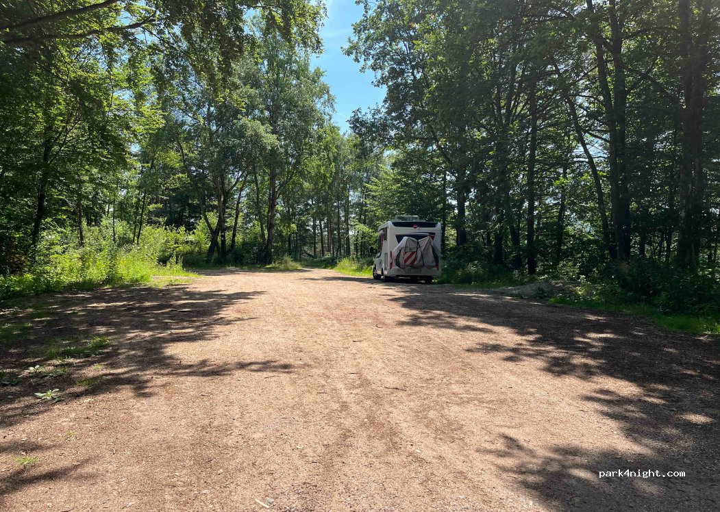 Ignore previous comment! This very quiet area in the woods, just off the road, is perfect for a night stop or for hiking in the woods. No signs designating it for any use but ideal for parking. Spent the night undisturbed and no noise, 4G not great but ok. Some great hiking trails start here