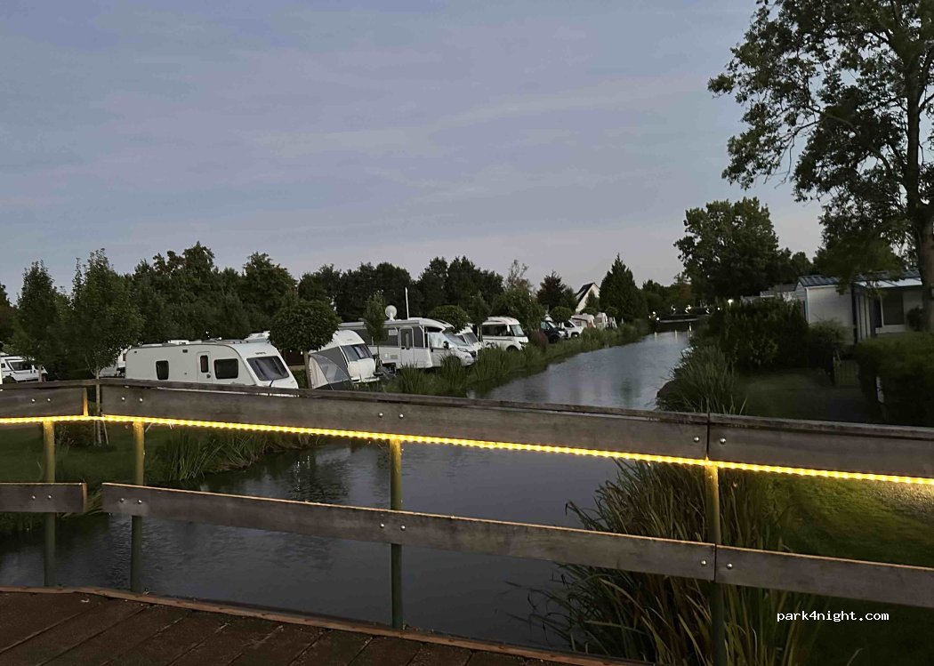 schön angelegter Platz, gut um mit dem Fahrrad nach Hoorn zu kommen das lohnt sich schöne Altstadt mit Hafen. Ein Punkt abzug durch die Bahnlinie die in der Nacht befahren wird und die Schranke bimmelt bei jedem Zug gefühlte 3 Minuten