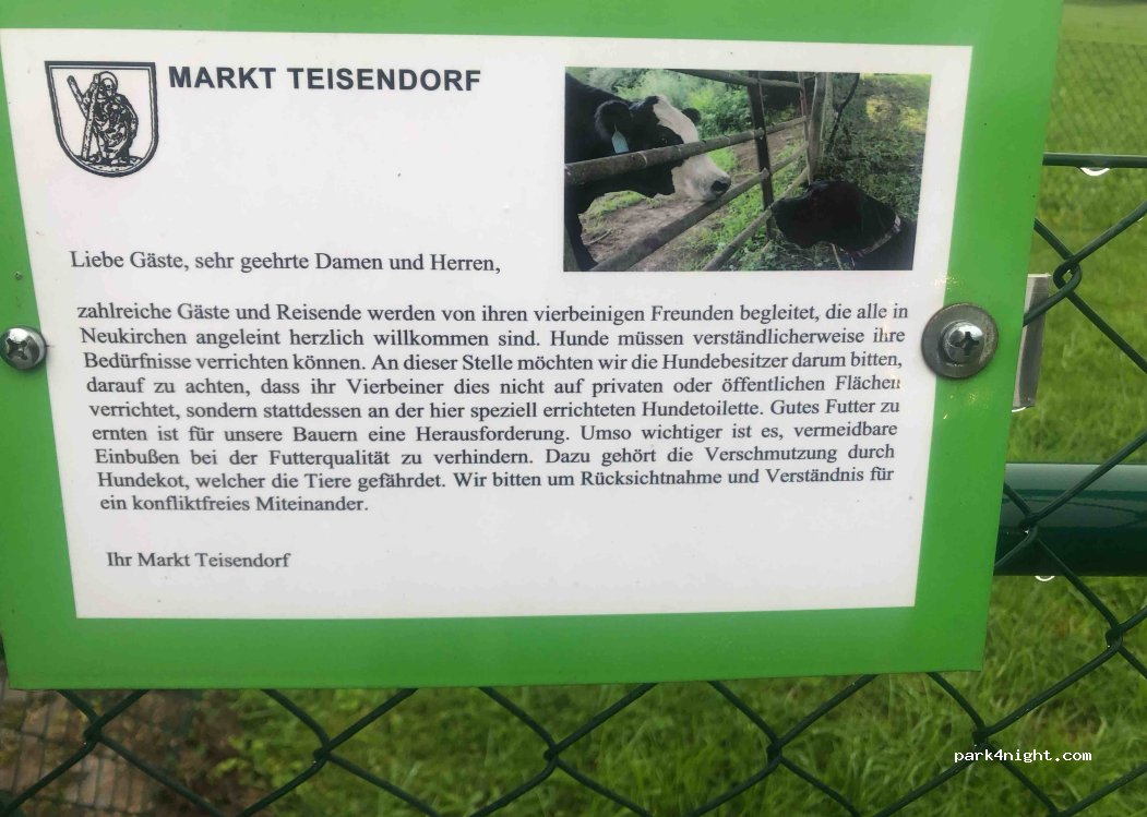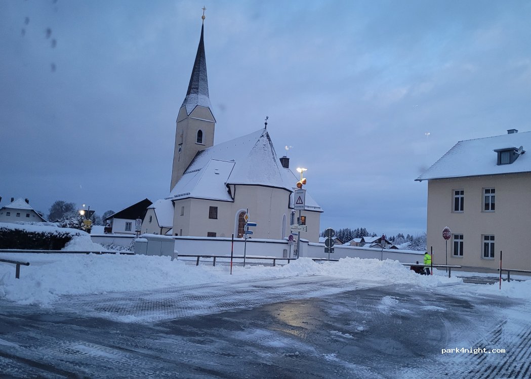 Parking lot in front of the Neukirchen elementary school. 1 min from the A8 motorway, Neukirchen exit. Good restaurant 100 m away.