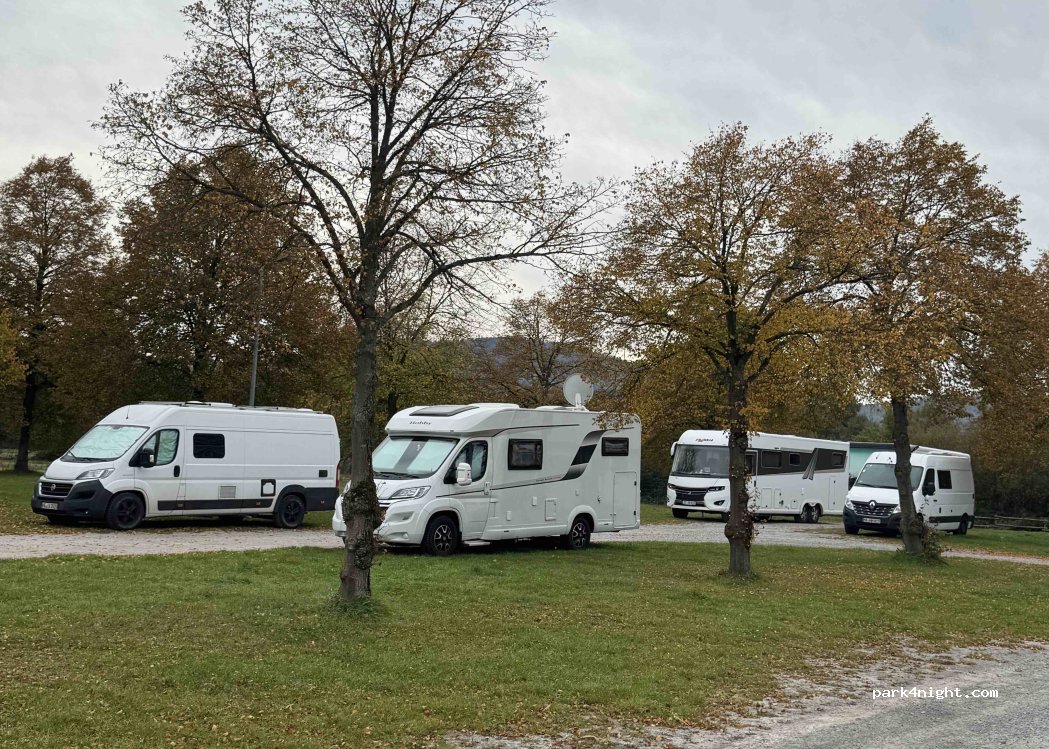 Gemütlich und nachts ruhig, auch für große Fahrzeuge geeignet. Wir haben hier zum 2. Mal eine Nacht verbracht, heute früh hat ein Gemeindemitarbeiter geklagt, dass der Mülleimer bei der Schaukel oft voll ist, wenn Wohnmobile hier stehen, und Waschbären den Müll dann über den Platz verteilen. Müll also besser z.B. auf einem Autobahnrastplatz entsorgen, damit uns der nette Platz erhalten bleibt.