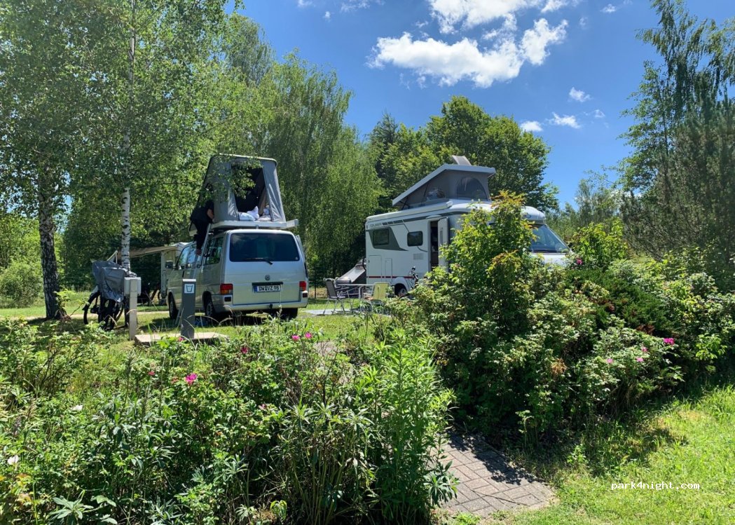 Camping Zitauer Gebirge, very well laid out, at the edge of a lake with super equipped environment. Innovation: for toilets, special automatic cleaning terminal, original but a little expensive! :-) Wifi good signal 6 am. Important, the sites are free, no delimitation!