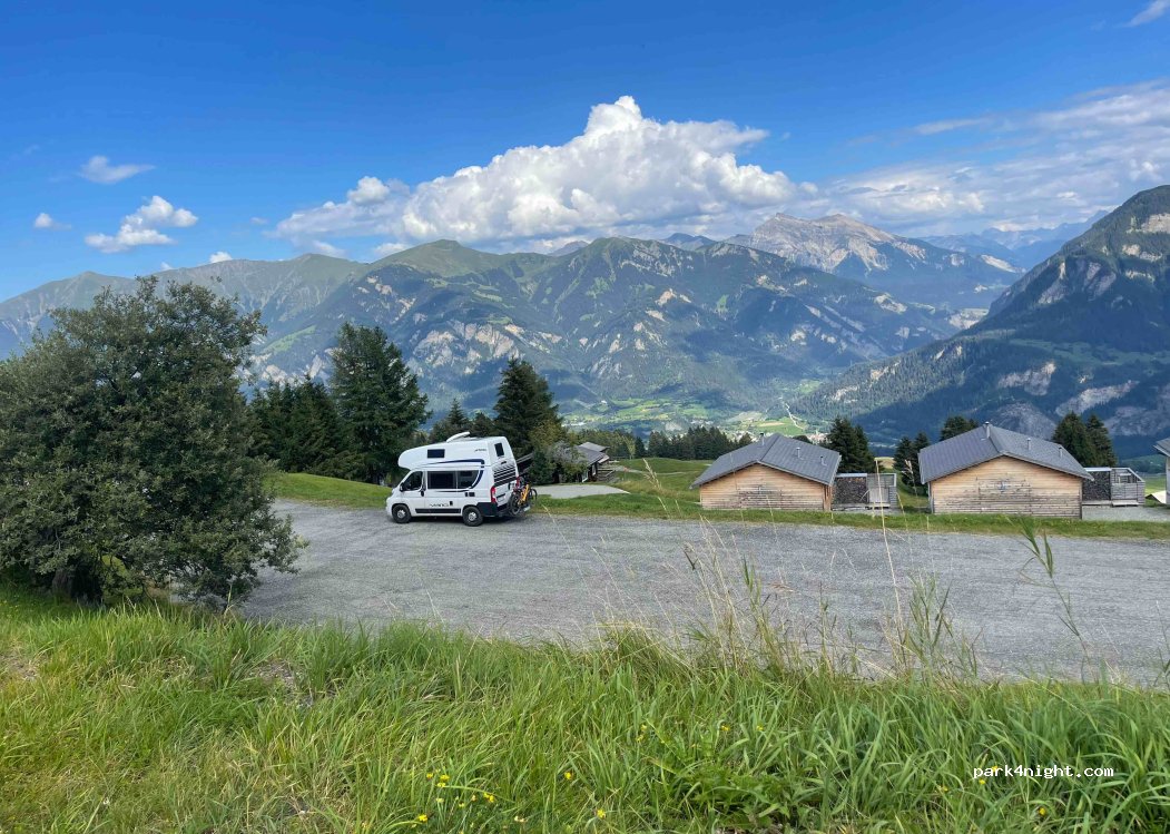 PARKING PAYANT - Place de parking très calme et gratuite sans infrastructure à 1544 au dessus du niveau de la mer. Point de départ des randonnées. Lac de baignade avec coin barbecue à proximité. Commerces dans le village de Flerden. Les informations d'adresse sont incorrectes. Suivez les panneaux "P Skilift".