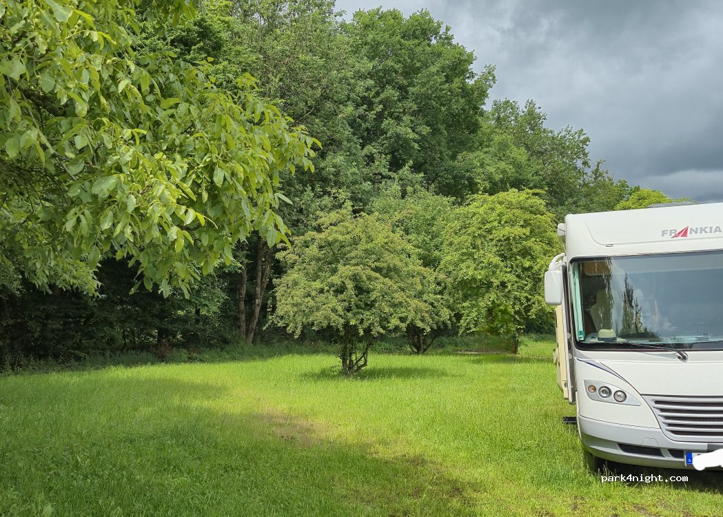 Endroit très propre, assez calme et pas mal de places. Parfait pour une pause d’une nuit sur la route. Endroit pour assez reculé entre les champs et accessible pour toutes les tailles de van, fourgon, camping-car.