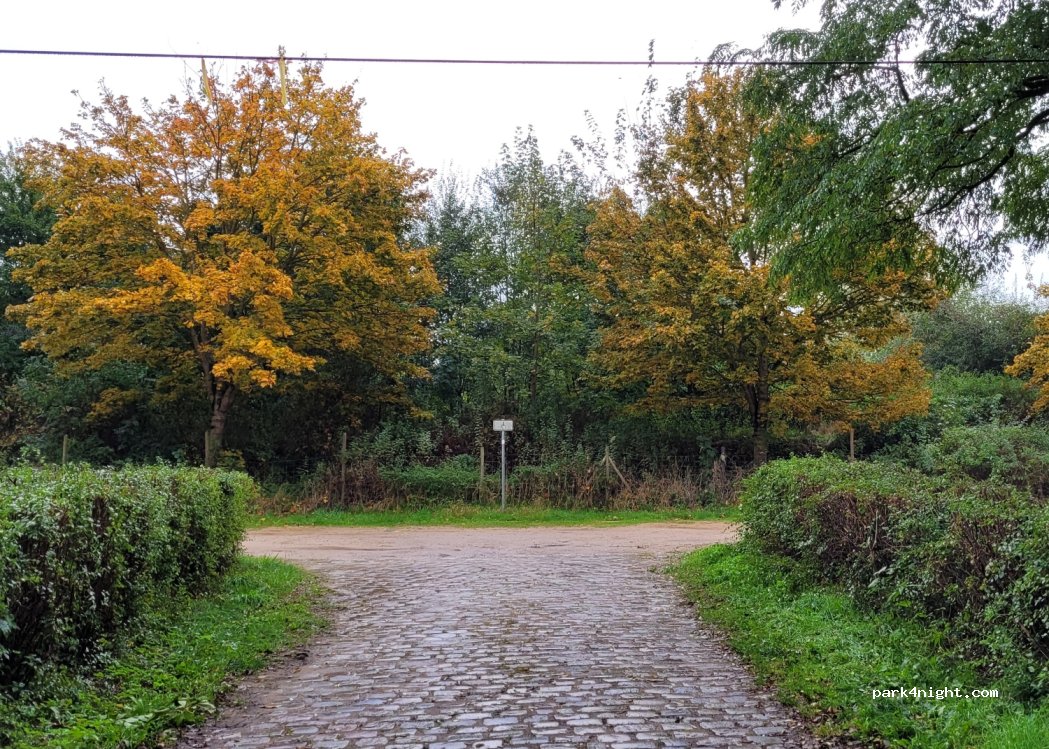 Keine Verbotsschilder, durch Bäume von der Straße getrennt. Dort fahren eh kaum Autos, nachts so gut wie garnicht.