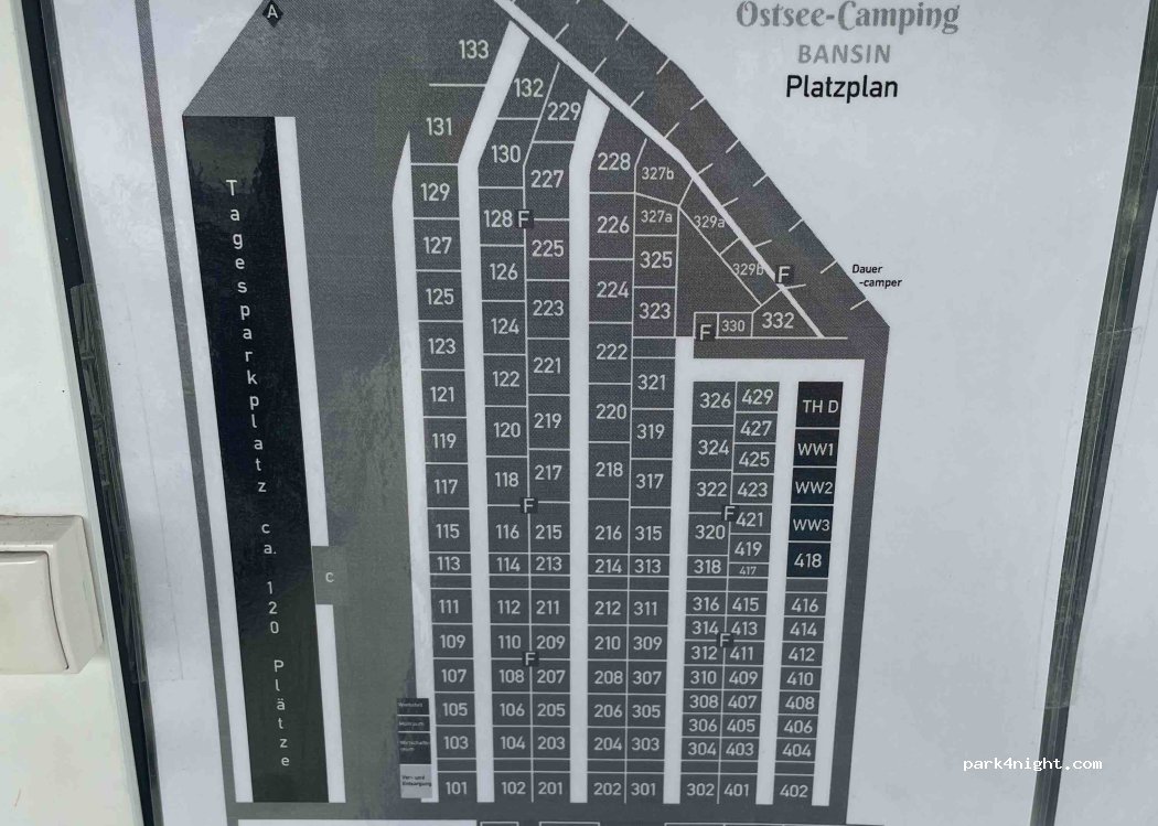 Camping Bansin sur la mer Baltique ! Grand parc pour camping-cars (tentes interdites). Tous les services, espace vert, entouré de forêts. La mer Baltique se trouve à 300 mètres à pied. Endroit calme.