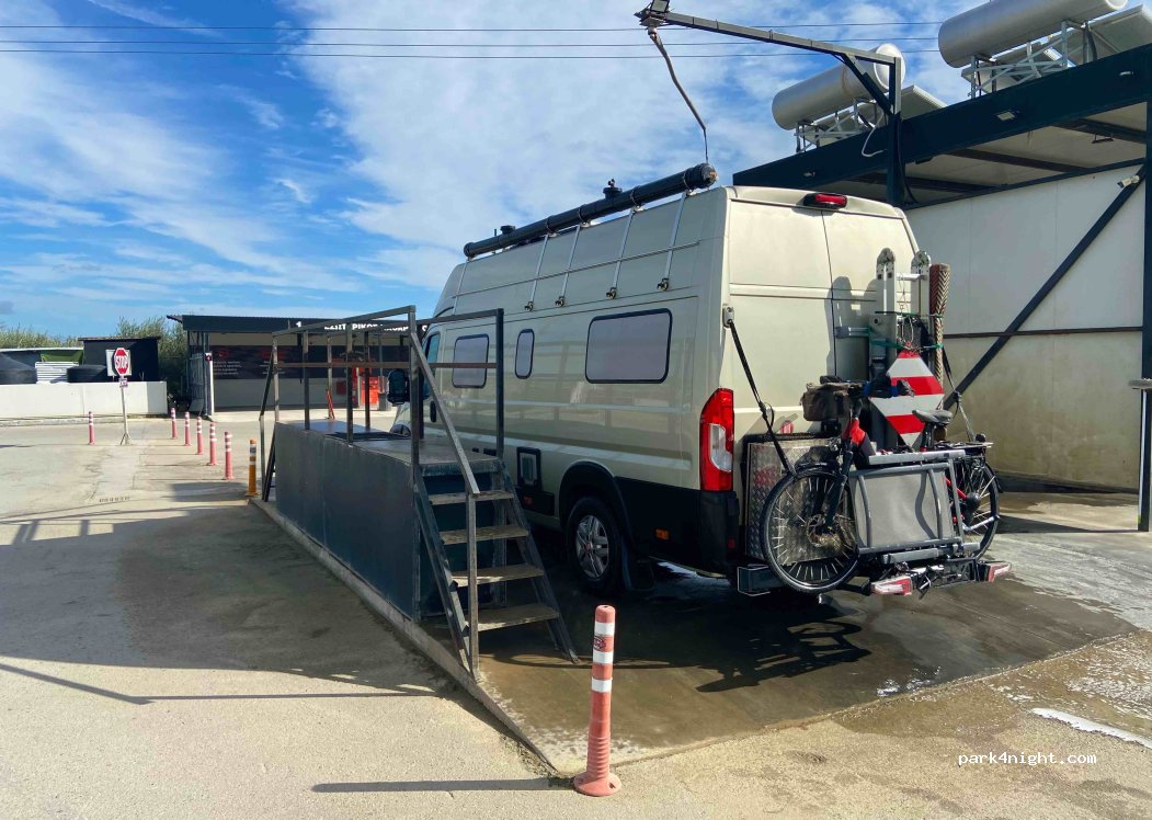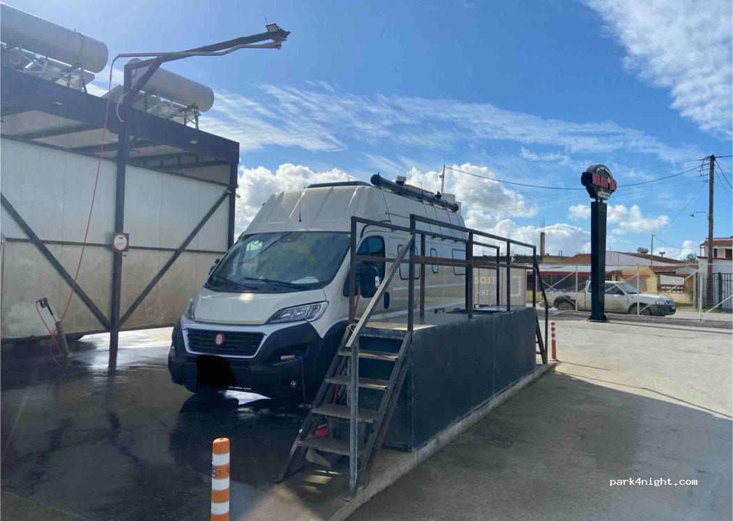 perfekt für Camper! über die Bühne mit Geländer konnte ich auch gut das Dach mit Solarpanelen reinigen. Preis für Wasser mit Schaum gut. Bürste wenig benutzt, leider nicht so sauber. Chef freundlich mit bestem Service. efcharistó