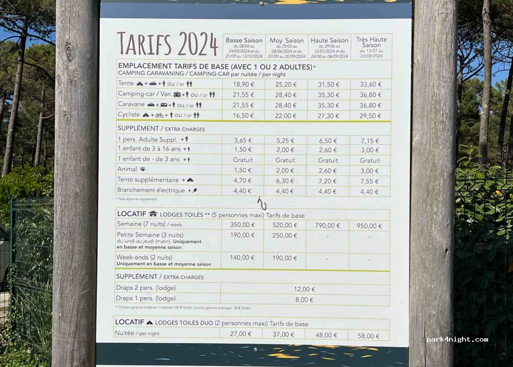 Très bon accueil, accès océan à pied. Sanitaires ok , emplacements sous les pins agréables mais un peu trop proches entre eux. 33€ une nuit en van à 2 avec électricité.