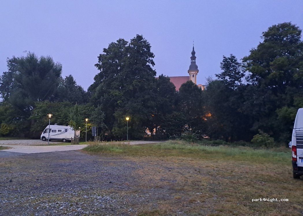 Schöner ruhiger Platz für die Nacht, ab und zu hört man den Zug hinterm Kloster, nicht so sehr laut. wer WC und Waschbecken braucht, im Kloster, Haupteingang und dann links, kostet pro besuch 50 cent, offiziell geöffnet 10-18 uhr, bei mir wars noch länger zugänglich. bierverkauf, bäcker und fleischerei in wenigen Minuten zu Fuss erreichbar. ich würde danoch mal nächtigen.