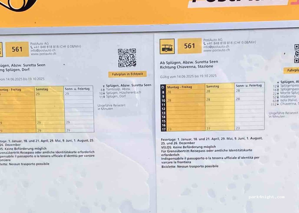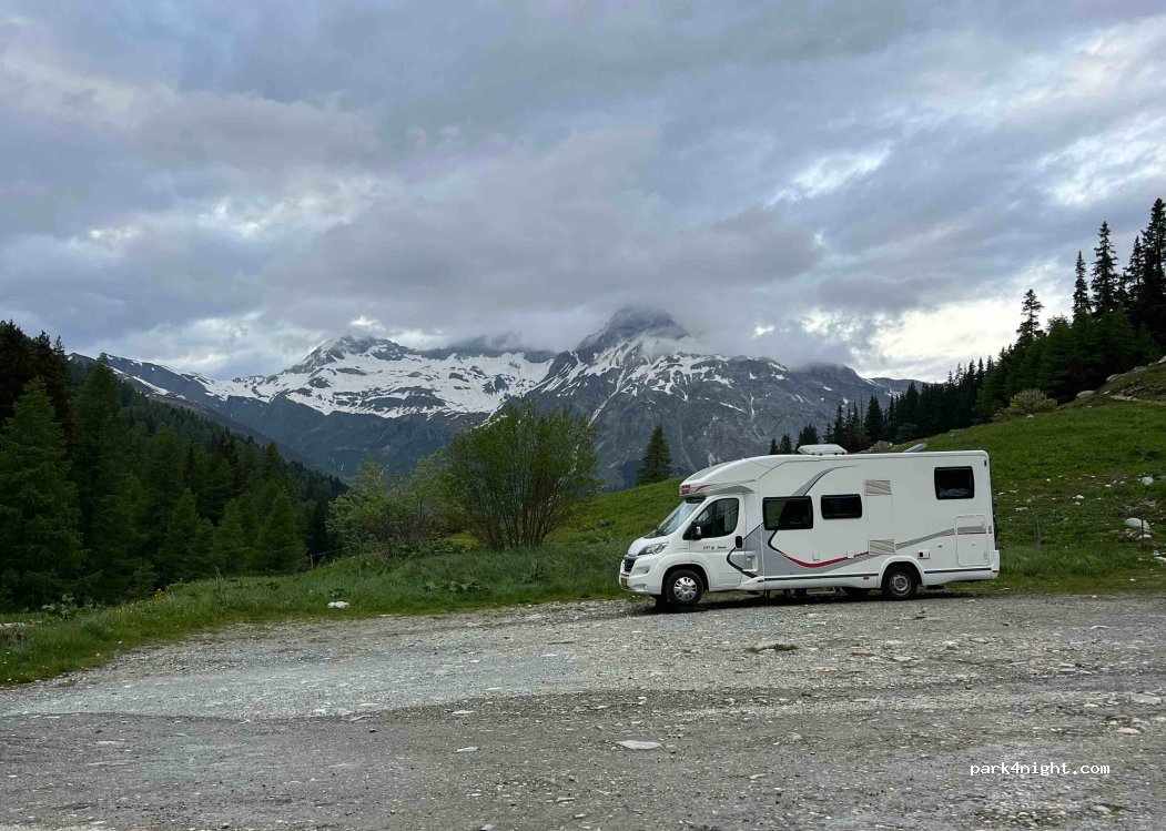 Ruhiger Wanderparkplatz am Fuße des Splüsenpasses.Nachts kaum Autos und absolute Dunkelheit. Perfekter Startpunkt für eine Wanderung am nächsten Morgen