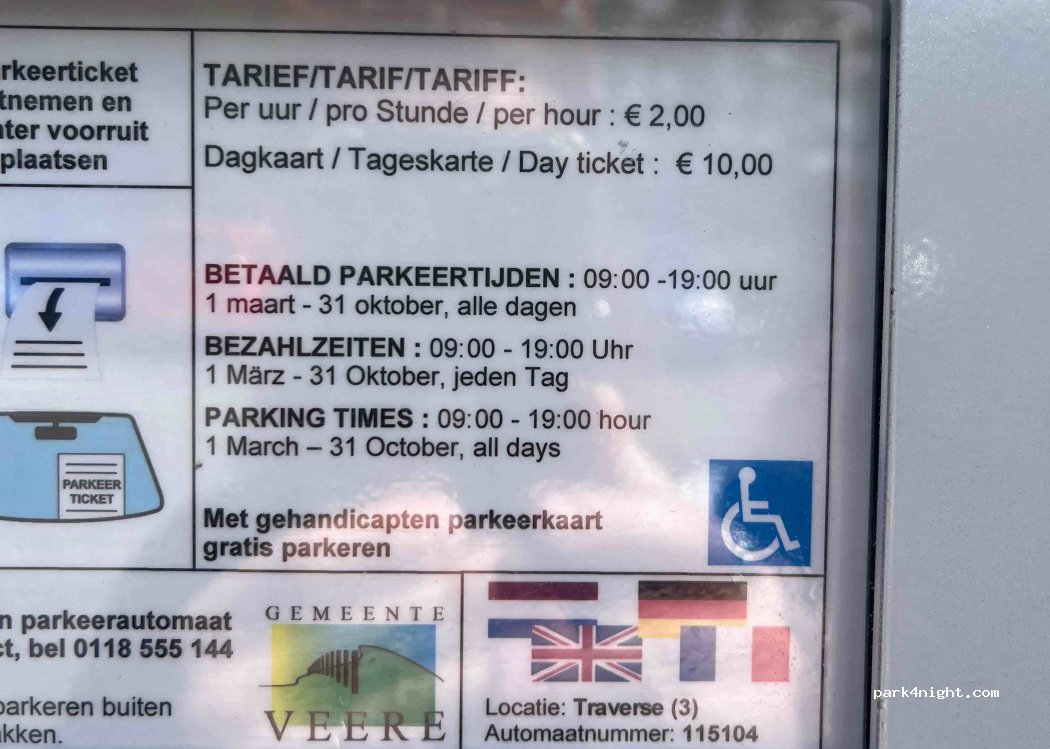 Parking in Domburg. RV parking spaces available. allowed to stand until 9 p.m.