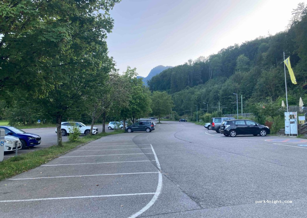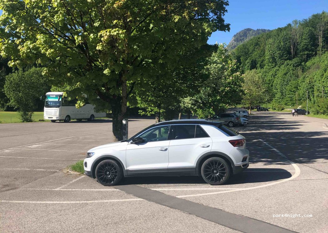 Parkplatz für den Zahnradzug nach Wendelstein. Der Parkplatz ist für den Kunden der Zahnradbahn reserviert. Da wir am nächsten Morgen dorthin wollten, blieben wir die Nacht dort, nachdem wir von einem 3 km entfernten Parkplatz entfernt worden waren.
