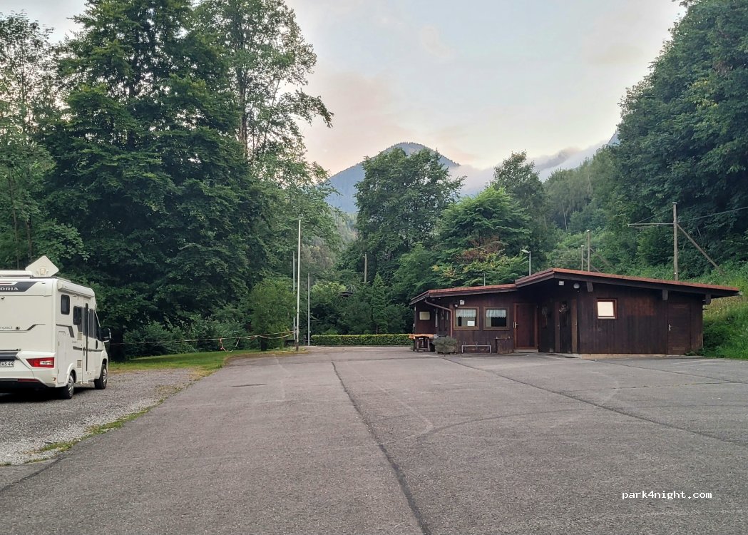 Bon endroit sans services pour une nuit au calme. Le matin, arrivée des visiteurs pour le train de montagne.