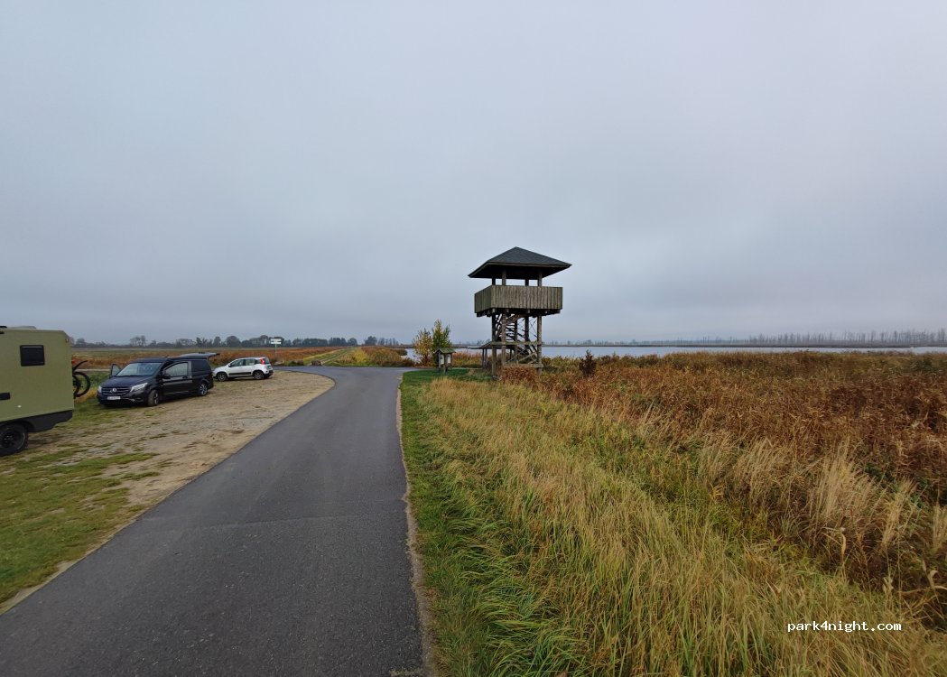 Parking space (gravel parking lot) directly at the observation tower Picturesque Peenebruch and a paradise for water birds.