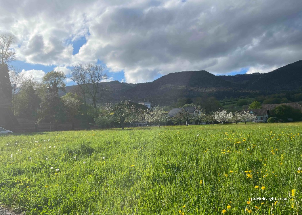 Sehr ruhig und idyllisch gelegen. Sehr netter Gastgeber. Wir haben bar bei ihm bezahlt (20 CHF), denn über den QR-Code hätte die Übernachtung laut "parknsleep"-App 34,50 CHF gekostet.