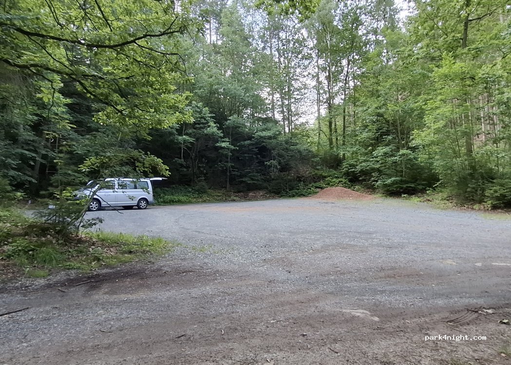 Platz ist guter Ausgangspunkt zum Wandern, allerdings überwiegend schräg. Tagsüber doch etwas Verkehr. Im Sommer sicher voll, da dies die Parkmöglichkeit für das Waldbad ist - wenn dies denn geöffnet hat. Kein Mülleimer vorhanden.