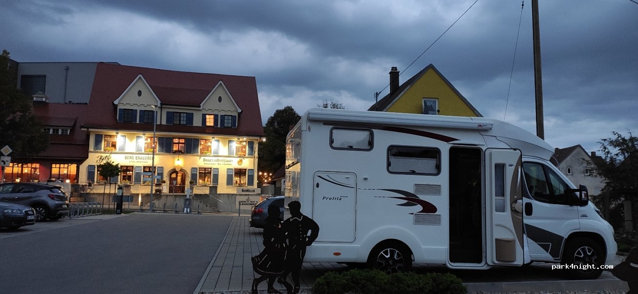 Super Parkplatz um die Brauereiwirtschaft zu besuchen. Nicht breiter als ein normaler Parkplatz, dafür länger - wir haben mit unserem 6m Pössl gut hingepasst.