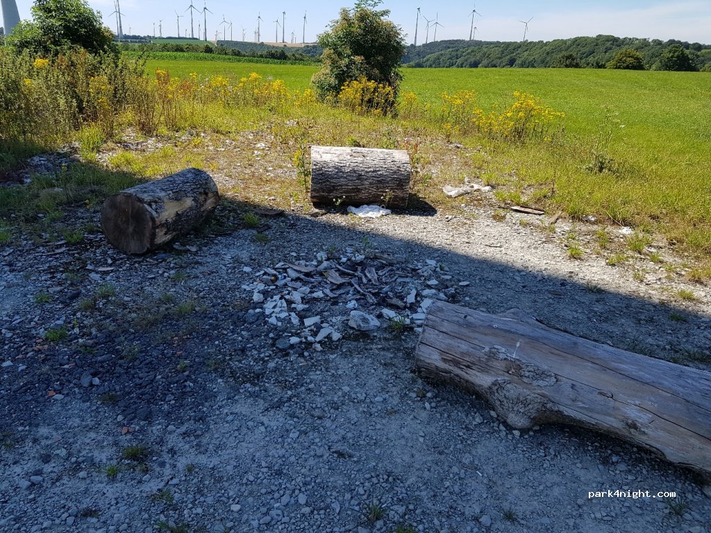 Windrad direkt neben der Bundesstraße ebenerdig. Keine Verbotsschilder vermutlich sind ab und zu Jugendliche dort, da es eine Feuerstelle gibt.