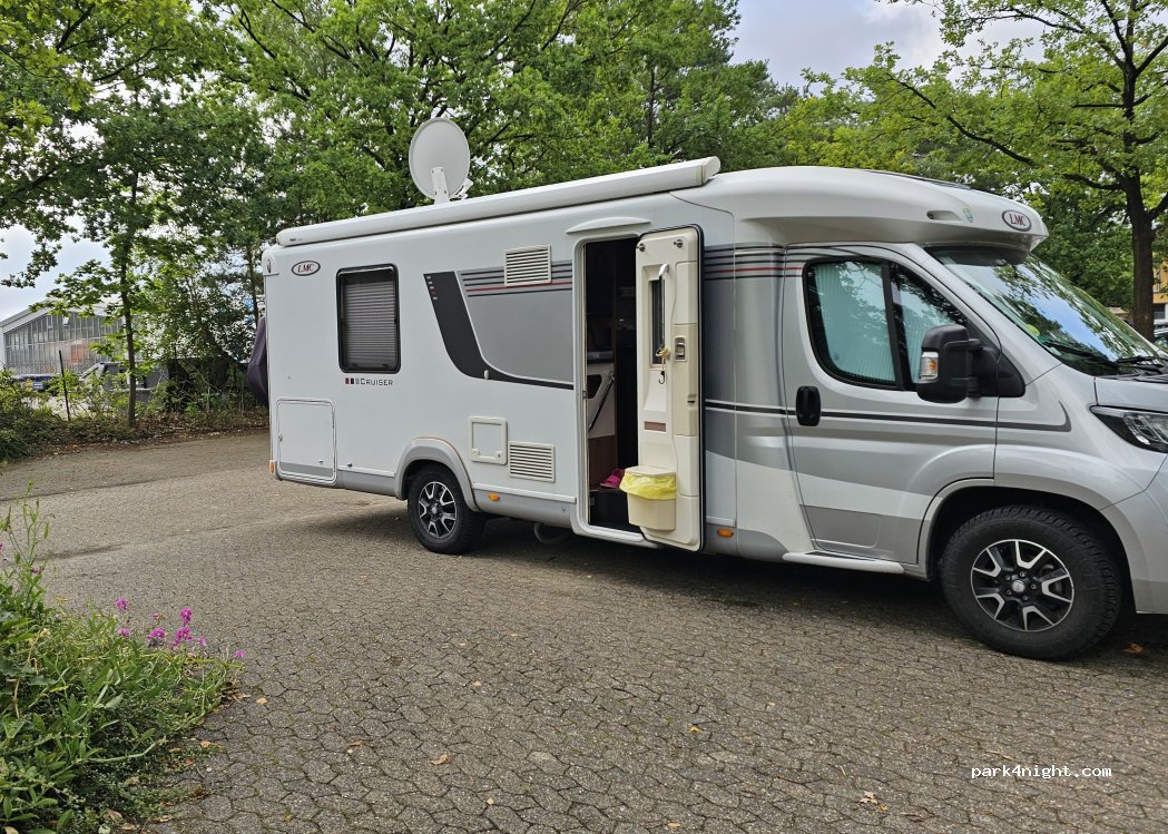 Parking calme en bordure du cimetière forestier de Soltau. Le parking est dans un quartier résidentiel. Pas de toilettes.
