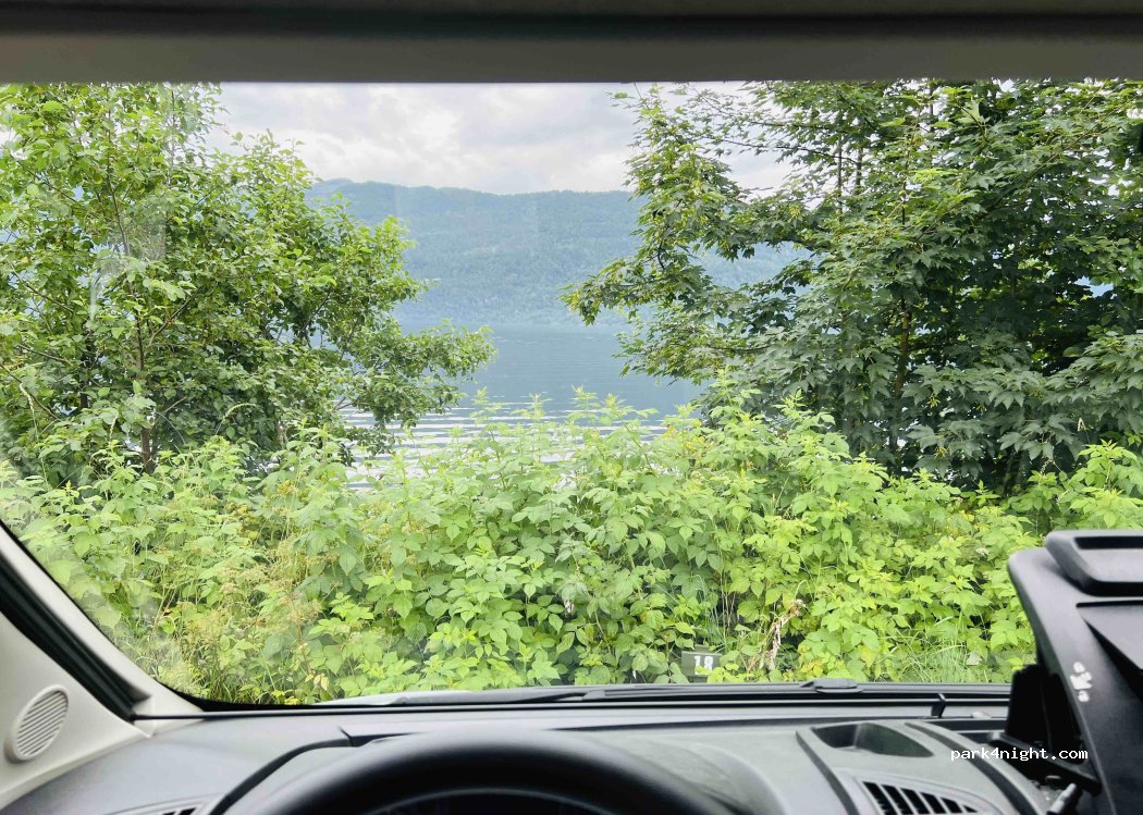 Belle vue sur le lac mais un peu cher… il faut payer pour avoir de l’eau chaude, nous avons dû utiliser l’aire un peu plus loin pour vider les eaux grises et noires et faire le plein d’eau… je ne recommande donc pas