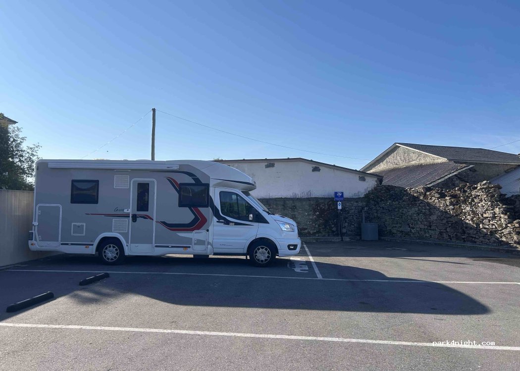 Hemos pasado un noche,es gratuita. El bar está enfrente dispone de menú hasta en la cena y la cocina abre hasta las 23h. Es un parquin tranquilo con vaciado, llenado y limpieza de potty. dispone de wifi gratuita en el bar. una buena opción para pasar la noche.