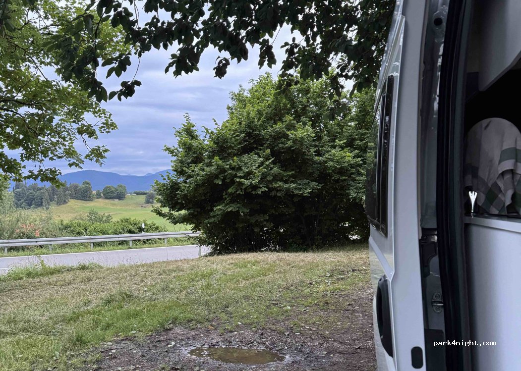 Guter Platz für eine Nacht. Die Straße hört man, wird in der Woche Abends/Nachts jedoch ruhiger. Hat uns nicht gestört. Kein Mülleimer, dafür Sitzbänke vorhanden. Kuhglocken aus der Ferne. Ich empfinde es eher als Platz für maximal 2 PKWs bzw Bullis. mit Sprinter sonst rückwärts rauf fahren.