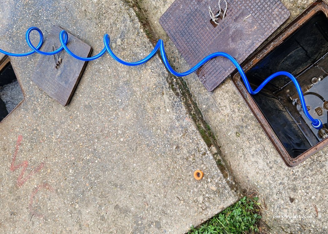 Todo funcionando correctamente, agua en el parking cubierto de las piscinas y desagües en la entrada del bosque mágico.