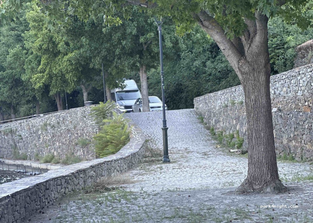 Roadside parallel parking so quite some disturbance from 6AM onwards. Other than that pretty spot alongside the river underneath the trees and very close to town. Recommend the hike up to Casal de Loivos.