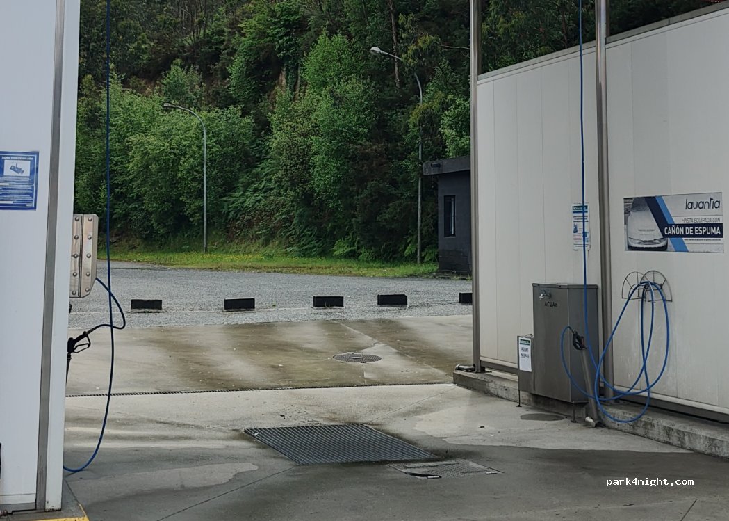 Allocated place for campervans to empty grey water, chemical toilets and to refill. Also has a power hose for cleaning the van. It is located at a gas station so we filled up on diesel too.